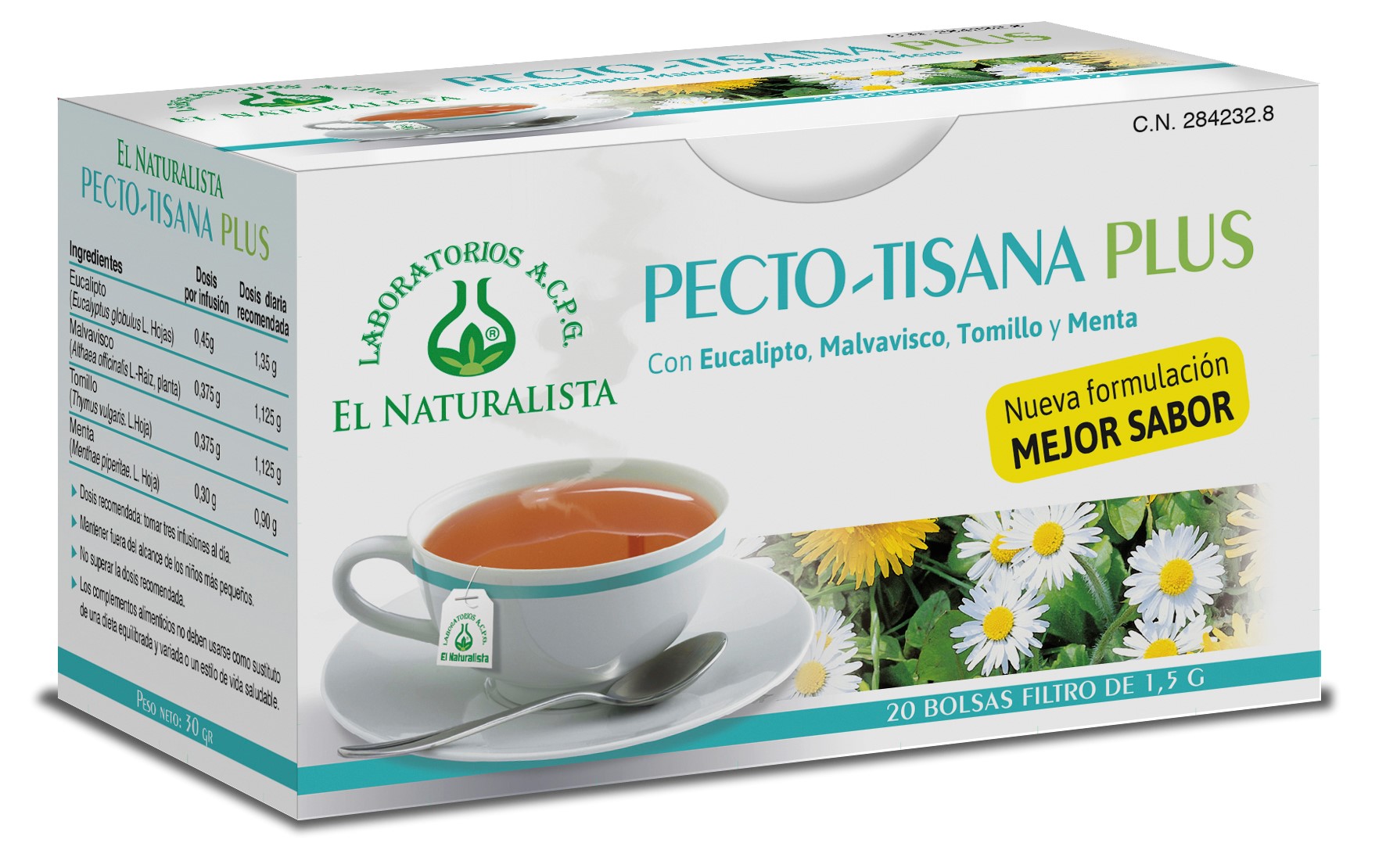 - El Eucalipto con propiedades expectorantes, balsámicas y antisépticas, - El Tomillo con propiedades expectorantes y antisépticas, - El Marrubio con propiedades balsámicas y expectorantes, - La Menta con propiedades antisépticas y descongestionantes nasofaríngeas, n El Malvavisco con propiedades antiinflamatorias y expectorantes.